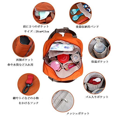 - 【使い方三つ】:リュックサックとトートバッグのほかに、ベビーカーにかけるのもできる。簡単なデザインだから、いろんなシーンに適用でき、マザーズバッグだけでなく、旅行や通勤通学などにも大活躍するアイテム。