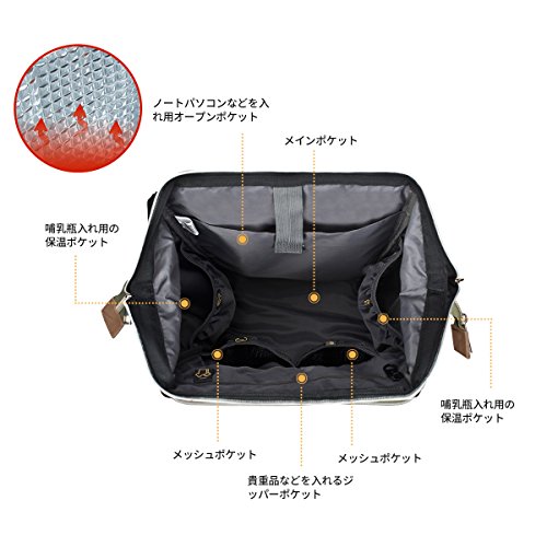 - 【収納力抜群】内外側にはポケット数が約10ヶ所。●メインポケット(仕切りが多く、それは保温ポケット2つとメッシュポケット2つ、ジッパーポケット1つ、パソコン専用ポケット1つ)●両側ポケット(ティッシュ専用ポケット含み)●前の小物ポケット●後ろの盗難防止ポケット