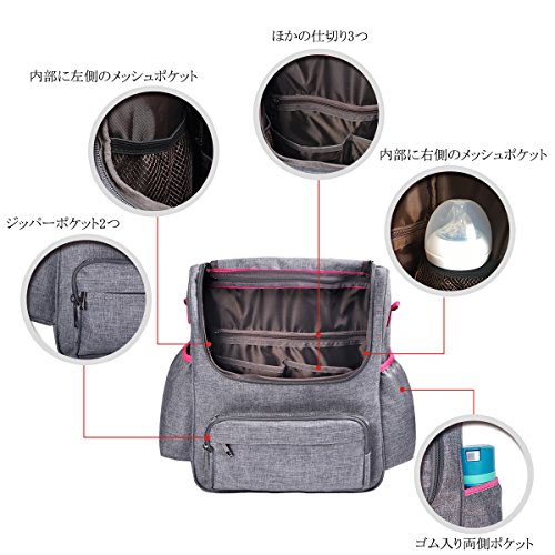 - 【特徴】●防水素材を採用し、汚れにくく摩擦に強いマザーズバッグ。●コンパクトのに大容量のマザーズバッグ。複数のポケットが付き、赤ちゃんのお出かけ用品と親方の日常生活品は全部収納可能、大変便利。●楽々のマザーズバッグ。背当て部分と肩紐にはスポンジが詰め込んで、表面にはメッシュ素材を採用し、ママの荷重を軽減してくれ、すごく快適。●多機能のマザーズバッグ。リュックサックとショルダーバッグとカートバッグとしての三つの使い方。両肩ストラップは背面ポケットにも収納できるし、ショルダーベルトとベビーカー用フックも付属し、自身のお好みによって、自由に選択できる。●「LANDUO」というのはBebamourの傘下ブランドでございます。
