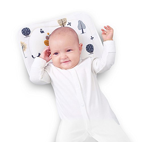 【ベビーアムール】Bebamour ベビー枕 新生児 低反発ピロー 3Dメッシュ 通気枕 向き癖矯正 絶壁頭防止 高さ調整可 丸洗い (白い森)