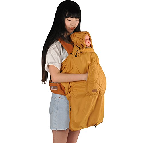 【ベビーアムール 】Bebamour 抱っこひもカバー ケープ ベビーフード付きパーカー コート 防寒 マント出かける用 出産祝い イエロー
