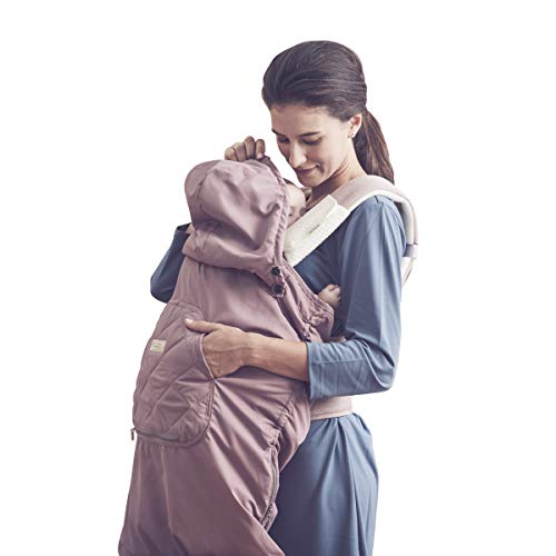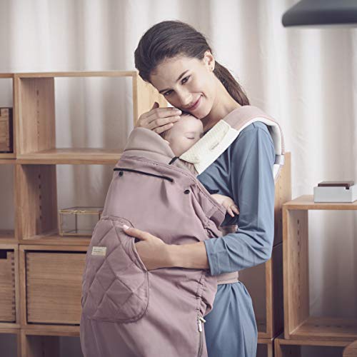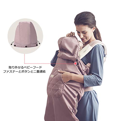 【ベビーアムール 】Bebamour 抱っこひもカバー ケープ ベビーフード付きパーカー コート 防寒 マント出かける用 出産祝い(濃いピンク)