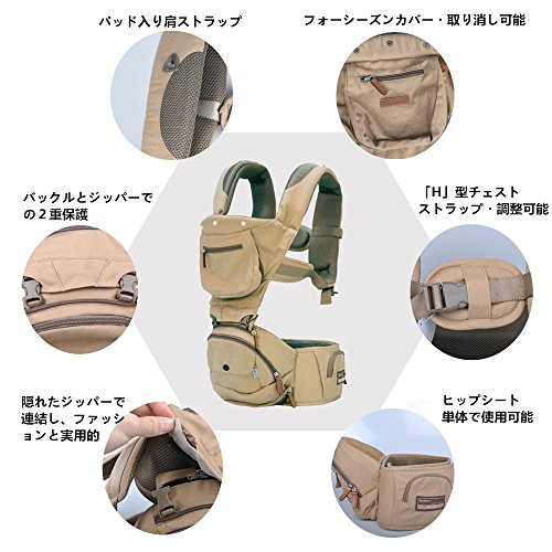- ヒップシート単体とベビーキャリアでなんと驚きの対面抱っこ、前向き抱っこ、おんぶ、腰抱っこなど5通り以上可能になる抱っこ紐です!