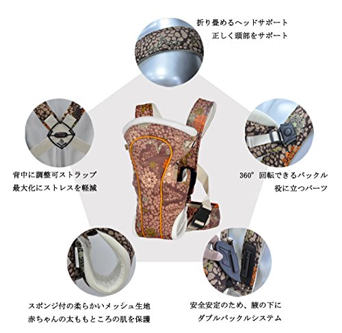 - 生地:100%ポリエステル。通気性が抜群で丈夫。 使用方法:おんぶ、前向き抱っこ、対面抱っこという3つ。