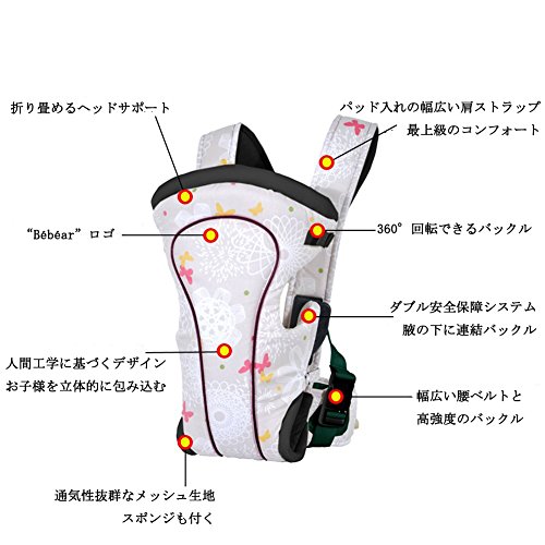 【ベビーアムール 】Bebamour 抱っこ紐 清新な花柄 ベビーキャリア3way 三色 (ホワイト)