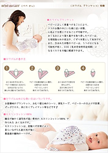 (ベベオレ) Bebe au Lait おくるみ ベビーブランケット スワドル 02.ティーローズ【単品】