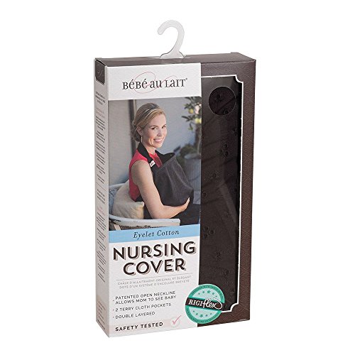 The Bebe au Lait Classic Eyelet Nursing Cover helps maintain privacy and comfort while nursing on the go. This breastfeeding cover has a patented Rigiflex open neckline that holds the cover away from mom and baby, which allows them to maintain eye contact and continue the important bond during breastfeeding. The neckline features a patented Interlocking Cap System that prevents sharp boning material from breaking through the ends, making it more durable and protective than the competition. The open neckline also ensures proper air flow and allows mom to see that baby is properly latched, encouraging breastfeeding success. The neck strap is secure and adjustable to hold the cover in place, so you can breastfeed with confidence no matter where you are. This one-size-fits-all nursing cover is made with double-layered 100% cotton and features embroidered eyelet details. The cover also has two internal terry cloth pockets for cleanups and storage. Black Eyelet is the little black dress of nursing covers with a classic and sophisticated design. The Bebe au Lait Premium Cotton Nursing Cover is machine washable, so it's always clean and ready to go when you need it. Bebe au Lait's award-winning nursing covers have been a favorite of celebrities and breastfeeding mom's since 2004. Bebe au Lait is committed to creating products that families love, whether it???s for bath time, mealtime, or on the go. All Bebe au Lait products are made of the highest quality materials and tested to meet international safety standards. Designed by parents for parents, Bebe au Lait is the practical and luxurious choice that mom???s reach for first.