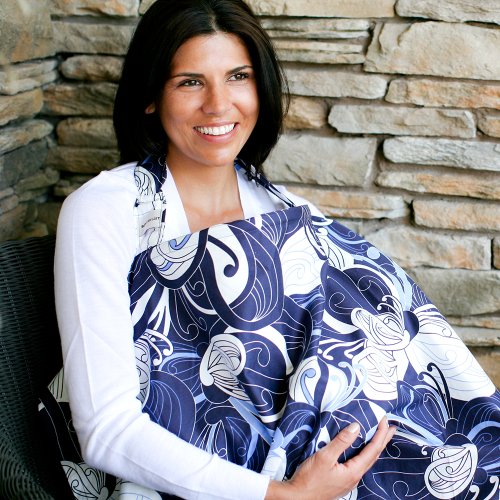 Free at last dont spend the evening in the other room or covered up with a teddy bear blanket! Bebe Au Laits Nursing Covers for Chic Mothers, were conceived from the need for privacy and style while breastfeeding. The Bebe Au Lait gives breastfeeding moms the freedom to spend time with family and friends while nourishing their child. Unlike any old blanket used while breastfeeding, the Bebe Au Lait is firmly attached to the nursing mother, so that Baby cant grab it & throw it off, compromising Mommys modesty! Each nursing cover is generously sized to fit every nursing mother. The neck strap is completely adjustable. A terry cloth panel at the bottom corner is perfect for little clean-ups! A unique feature of the Bebe Au Lait is the ability to shape the top edge, so that mother and baby can continuously make eye contact while nursing, an essential part of mother and child bonding & attachment. The Bebe Au Lait folds up nicely to easily toss into any purse or diaperbag.