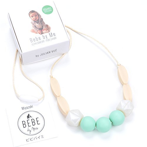 Welcome to the bebe by me international family lab tested benefits by our in-house pediatricians massages and soothes sensitive gums stimulates sensory development cures teething pain and drooling package content 1 miyazaki teething necklace with 9 uniquely hand-crafted beads color combination: mother of pearl, icy peppermint, exotic ivory freezer friendly and machine washable toxins and bpa free. Fda approved our bebe by me international money back guarantee for any reason, if your little one doesn't like this product, send us a friendly message first and we will immediately issue you a full refund. We love to serve you and we care about your thoughts.