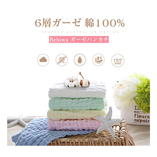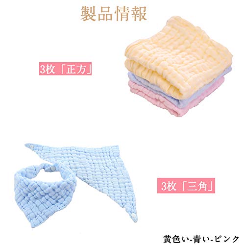 Bebiwa ガーゼハンカチ ベビー ビブ ガーゼタオル 6層ガーゼ 綿100% ふわふわ 肌触り 食事用 新乳児 出産のお祝いギフト 3枚「正方」+3枚「三角」