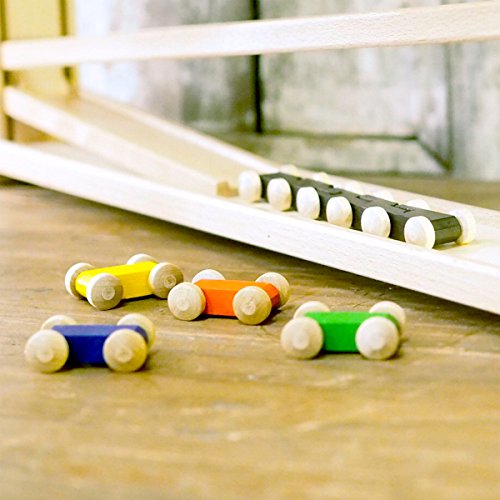 - 車がシャーッと滑り落ちる人気の木製スロープトイです。