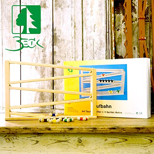 ドイツ・Beck(ベック社)のベストセラー。車がシャーッと滑り落ちる人気の木製スロープトイ「トレインカースロープ」です。 「トレインカースロープ」は、1979年に創設者クリストフ・ベック氏が考案したベック社を代表するおもちゃのひとつです。 連結車やカラフルな車がスロープを走っていくという単純な動きのおもちゃですが、期待通りの動きや結果に対する楽しさや満足感を得られることで子ども達を引きつけ、30年以上変わらずベック社のベストセラーアイテムとなっています。 トレインカースロープは、ジャンピングカートレインより車がゆったりと動き、子どもの目でも追いやすく、まだ自分で遊べない半年頃から1歳ぐらいでも見て楽しめるのこともできます。 スロープ本体に、カラフルな車4台、4両連結トレイン1台が付属しています。 連結トレインと、単体の車ではスピードや音が異なり変化があって楽しいです。 まだ自分では遊べない半年くらいの赤ちゃんには、動きを見せてあげて下さい。 注目や追視など、赤ちゃんの視力の成長に役立ってくれます。 1歳半頃から、自分で遊べるようになると、ユーモラスな動きと音が楽しくて、自ら繰り返し遊ぶことでしょう。 スロープトイは、シンプルなおもちゃですが、お子さまの「指先の器用さ」や「手と目の協応動作」を養う知育玩具としてもオススメです。 保育施設やショールームなどの2・3歳ぐらいの子ども達が集まる遊び場にオススメのおもちゃです。 ビッグサイズの「トレインカースロープ (大)」もございます。
