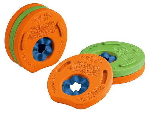Suitable for 1-12 years (up to 60kg). Tested in accordance with EN 13138-1:2008.;SwimDiscs are seawater-resistant, 100%waterproof and very durable Comfortable to wear;The discs are made from PE foam and are comfortable to wear.;Adjust the number of discs according to your child's ability;Set of six coloured discs (three per arm)