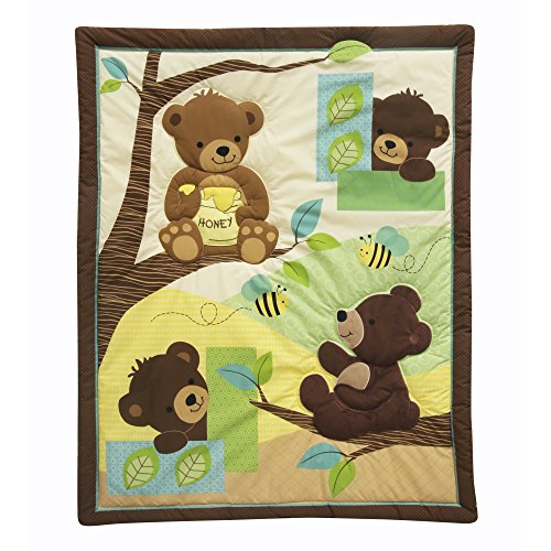 Bedtime Originals Honey Bear 3 Piece Crib Bedding Set, Brown/Green