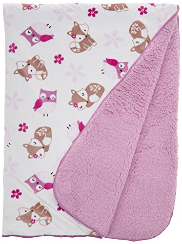 Sherpa Blanket - Snuggle your little one in this super-soft blanket featuring friendly foxes, happy owls, and pink flowers.? A lavender Sherpa back is oh so warm and cozy.?;Blanket measures 30 X 40?and is made of 100% polyester.;Care instructions: machine wash warm separately, do not bleach, tumble dry low, and iron on lowest setting as needed.