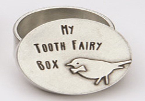 Super cute tooth fairy box to place on tooth fairy pillows or any pillow. Parents can use tooth fairy ideas.;Handcrafted pewter. Lead free of course.;Highly polished so it's shiny like silver.;A wee size: 1 3/4 by 1.;A tooth fairy pillow is a great baby gift idea or birthday gift idea. Comes boxed.