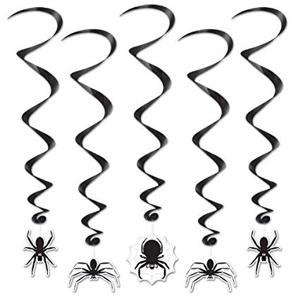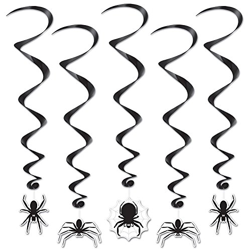 Beistle 00784 Spider Whirls (5 Count). Great hanging decoration for Halloween! These black metallic spirals have different spiders attached in different designs made of cardstock. They measure 34 Inch long.
