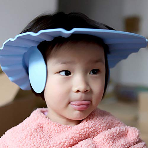 Beito シャンプーハット 子供 シャンプーキャップ シャワー 洗髪用帽子お風呂 樹脂 サイズ 調整可能 防水帽 ブルー