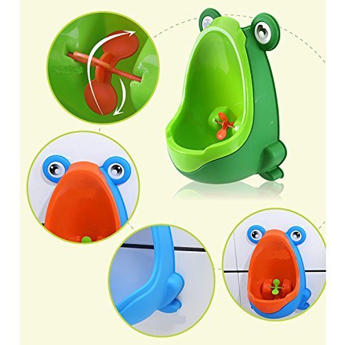 - トイレが楽しい~♪立ってする、トイレトレーニング!かわいいカエルの男の子用おまるが登場。 クルクル回転するプロペラにお子様も夢中。的当てが楽しくて失敗もありません。