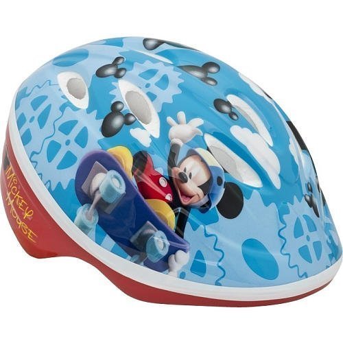 Keep your child protected with the Bell, Multicolored Mickey Mouse Toddler Helmet. The stylish, cutting-edge design and engaging, brightly-colored cartoon design make this a Helmet your son will love to wear. You on the other hand will love the superior protection that's been loaded into this protective Bike Helmet. Lined with ergonomic interior padding, ventilation cutouts and a non-pinching chin-strap buckle to provide a comfortable, secure fit that won't rub, irritate or distract. Perfect for biking, skating or any other sport that requires protective headgear, this versatile Bell Helmet will safely and stylishly protect your child through it al