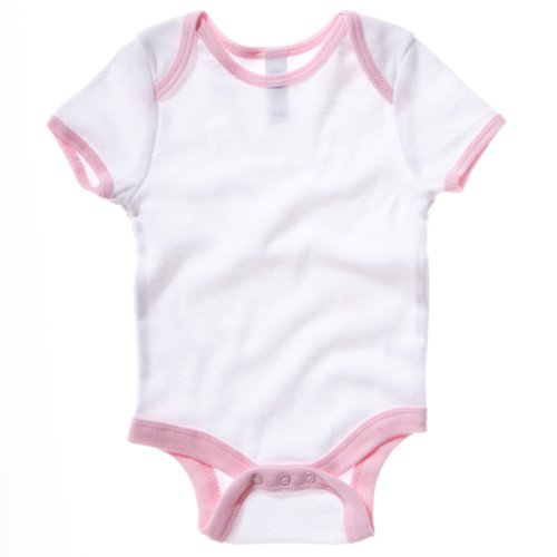 (ベラ・キャンバス) Bella + Canvas 赤ちゃん・ベビー用 リンガーロンパース 半袖ボディースーツ (1歳半-2歳) (ホワイト/ピンク)