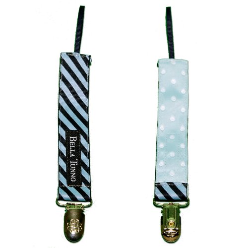 Bella Tunno Ribbon Loop Pacifier Clip, Oxford Zebra Stripes/Sky Blue Dots by Bella Tunno