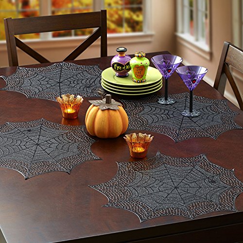This spider web placemats will be a great addition for your Halloween holiday. Creative spider web design will impress your family and your party guests. This placemats used pressed vinyl material and very easy to clean with a damp cloth. SEARCH additional collection under Benson Mills brand.