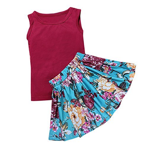 BeSdeキッズベビー女の子ドレスプリントドレス半袖Tシャツ+スカート服装ドレス カラー: レッド