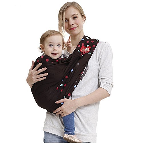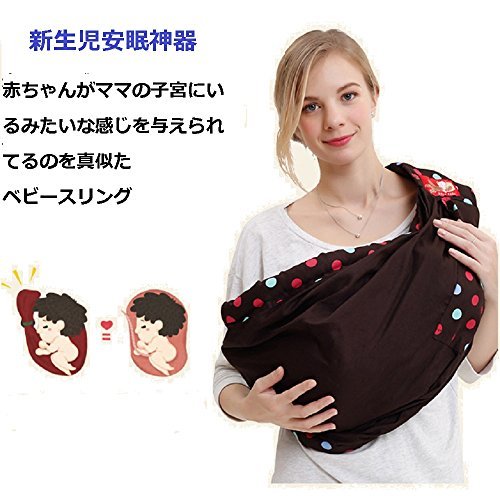 良ベビースリング ベビーキャリア 授乳カバー 赤ちゃん抱っこひも 抱っこひもスリング 新生児0~24ヵ月 6WAY 安心・安全バックル付き 便利なポケット付き フリーサイズ ストラップでサイズ調節可能 お出かけ用 プレゼント 男女兼用 (ブラウン丸柄)