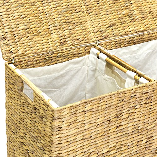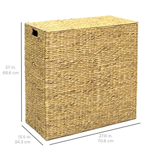 - 自然な織りウォーターヒヤシンスを使用して構築されたデュアルコンパートメント洗濯籠:任意のホームデコレーションとして