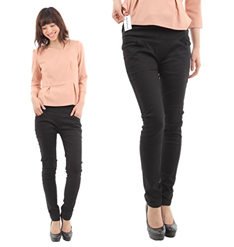 Best of Luck マタニティカラーパンツ スキニーデニム M~XL 大きいサイズ 産前 産後 (ブラック(L)) w_p_b_070