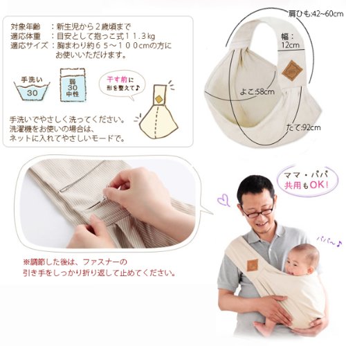 スリングの利点をそのままに、肩紐の調節機能をプラス!パパと共用しやすくなりました。