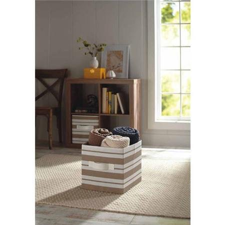 タンストライプ折りたたみ可能なファブリックストレージキューブ、2のセット、複数の色