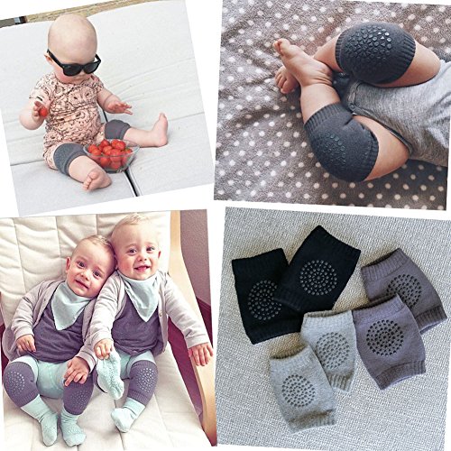 Betterbaby 赤ちゃん 膝当て 膝サポート プロテクター ハイハイ用具 歩行勉強 二―パッド 衝撃 緩和 擦りむき防止 0歳から3歳 3セット入れ 黒 深い浅いグレー