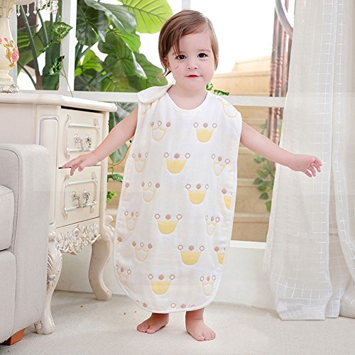 スリーパー Betterlife バビーパジャマ 寝袋 6重ガーゼ ソフト コットン綿 寝冷え防止 赤ちゃん ベビー キッズ チョッキ 袖なし 春夏秋冬 通気 ボタン開閉式 ドレス式 出産祝い クラウン柄 かんむり Lサイズ 45cmx80cm