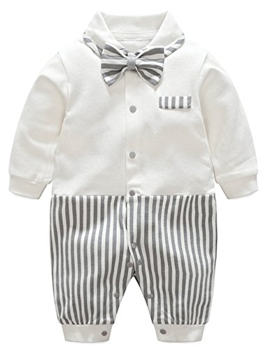 Bevalsaベビーフォーマル ロンパース 長袖 結婚式 男の子 ストライプ 洋服