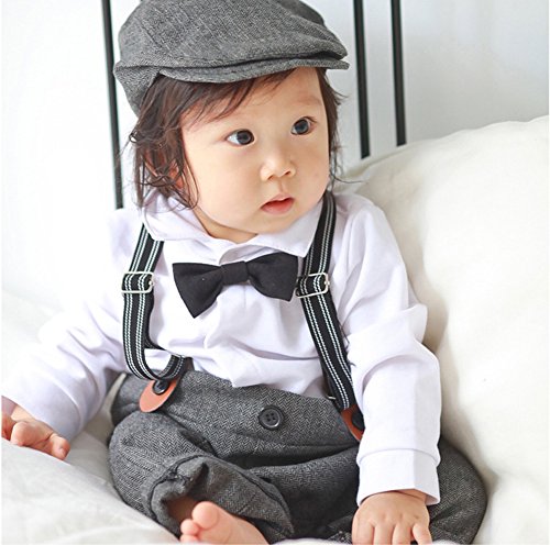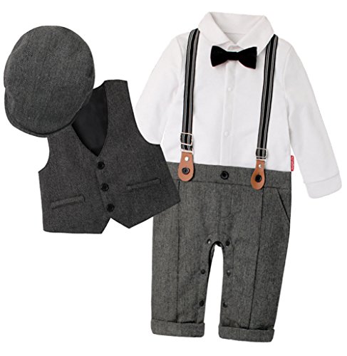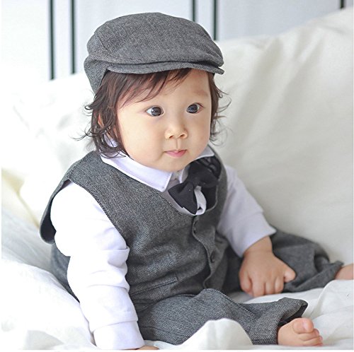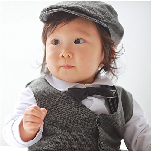 Bevalsa子供服 フォーマル スーツ ベビー ロンパース 長袖 ベスト 帽子 3点セット カバーオール 正装 赤ちゃん 男の子 結婚式 お宮参り