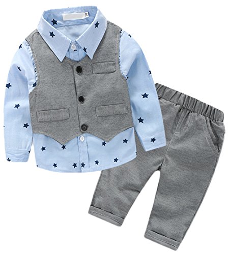 Bevalsaベビー服 男の子 フォーマルスーツ 上下セット キッズ 男の子 紳士服 シャツ ベスト パンツ 3点セット 長袖 赤ちゃん 幼児 出産祝い 結婚式 撮影 記念日 誕生日