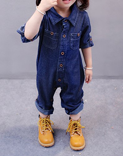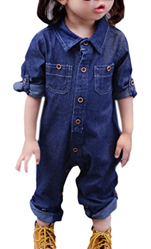- 赤ちゃん用長袖のデニムロンパース、ちょつと大人っぽいデザインがいいですね。