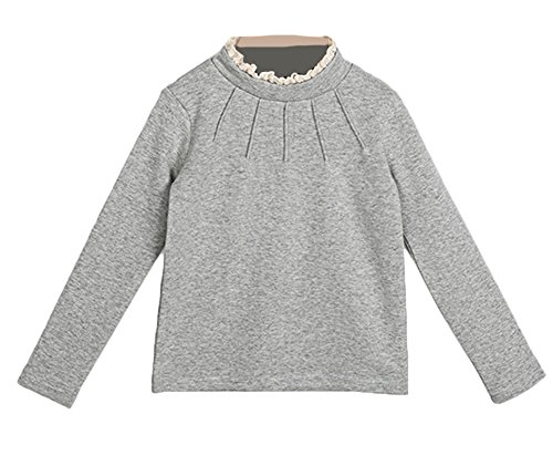 Bevalsa女の子 春 秋 冬 柔らか 無地 長袖 Tシャツ キッズ フリル カットソー スカラップ ハイネックシャツ 子供服 ベビー ゆったり 裏ボウ ボトムシャツ 普段着 部屋着 可愛い お洒落 あったか ガールス服