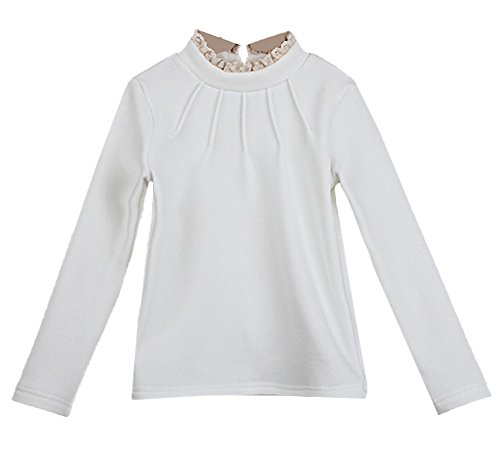 Bevalsa女の子 春 秋 冬 柔らか 無地 長袖 Tシャツ キッズ フリル カットソー スカラップ ハイネックシャツ 子供服 ベビー ゆったり 裏ボウ ボトムシャツ 普段着 部屋着 可愛い お洒落 あったか ガールス服