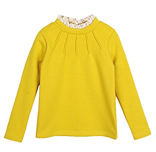 Bevalsa女の子 春 秋 冬 柔らか 無地 長袖 Tシャツ キッズ フリル カットソー スカラップ ハイネックシャツ 子供服 ベビー ゆったり 裏ボウ ボトムシャツ 普段着 部屋着 可愛い お洒落 あったか ガールス服
