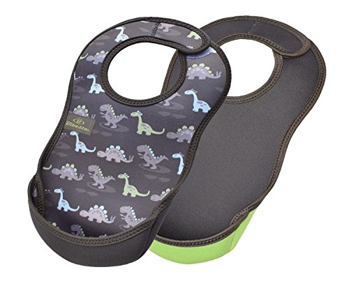 Bibetta ビベッタ 防水くるくるエプロン ウルトラビブ M ミディアム 2枚入 Dinosaur/Charcoal Gray ダイナソー/チャコールグレー
