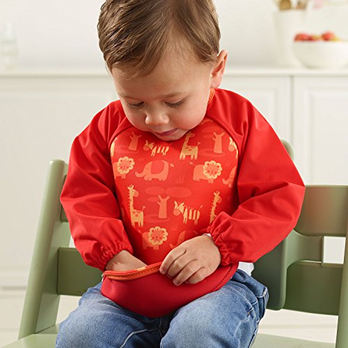 ●【商品説明】●ウェットスーツ素材と防水素材でできた、とっても軽くて柔らかい袖付きのベビー用エプロンです。●裾をまくれば、立体的で大きな食べこぼしキャッチ用ポケットが登場!床に落ちる食べこぼしも減るので、お掃除も楽ちん●本体はウェットスーツの素材(ネオプレン)でできているので、食べこぼしや飲みこぼしも徹底ガード!吸水性のある表面で水分をキャッチ!インナーのゴムが表面でキャッチした水分の浸透を防ぎます。●ネオプレンは耐久性のある素材なので、長い期間使用することができてお財布にも優しい商品です。●袖部分は柔らかな防水素材です。●袖口はゴムギャザー入りで、中に着ているお洋服の袖口をしっかりカバーします。●ラグラン袖への改良により肩や腕が動かしやすくなり、よりお子様の「自分で食べたい」気持ちをサポートします。●洗濯機&乾燥機使用OK!●5つのデザイン賞をはじめ、ヨーロッパで数々の賞を受賞!イギリスのライフスタイル誌「Junior」が主催する2012 Junior DESIGN AWARDSではデザイン賞を受賞していて、イギリスでも大人気のベビー用エプロンです!●まとめ買いの...