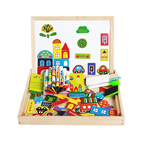 【Bidear】木製パズル 磁気ステッカー 知育 木のおもちゃ 木製の両面描画ライティングボード 絵かきボード 製図板 認識力 創造力 子供用パズル 面白い 落書き 自由に組み合わせ