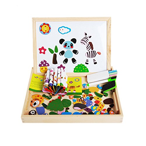 【Bidear】木製パズル 磁気ステッカー 知育 木のおもちゃ 木製の両面描画ライティングボード 絵かきボード 製図板 認識力 創造力 子供用パズル 面白い 落書き 自由に組み合わせ