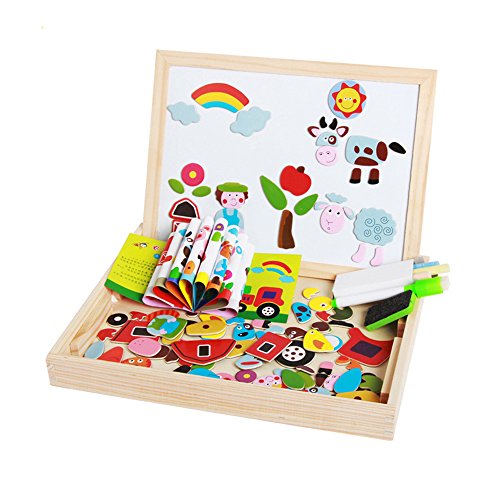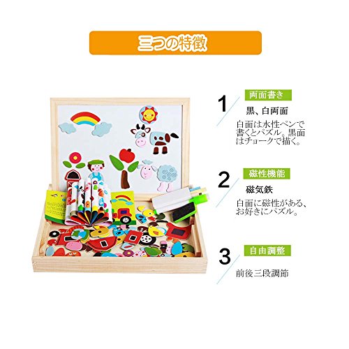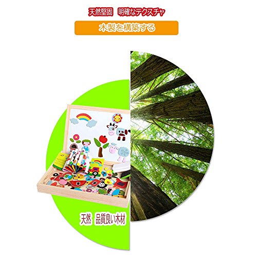 【Bidear】木製パズル 磁気ステッカー 知育 木のおもちゃ 木製の両面描画ライティングボード 絵かきボード 製図板 認識力 創造力 子供用パズル 面白い 落書き 自由に組み合わせ