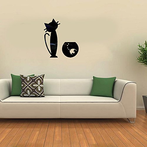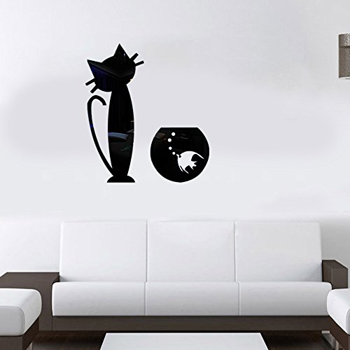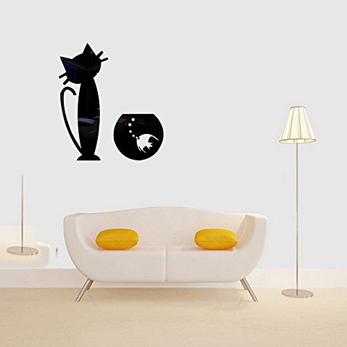 (Bidear)特別な猫と魚掛け時計壁飾り 部屋装飾 ウォールステッカー おしゃれ ! 創新なデザイン 壁飾り壁掛け かわいい クリスマスプレゼント