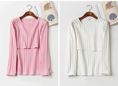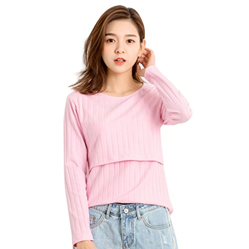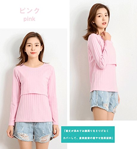 「Bidear」授乳服 授乳口付き 長袖 年中使える マタニティ ウエア 大人かわいい カジュアル 美シルエット 授乳 トップス 産前産後 (ピンク, XL)