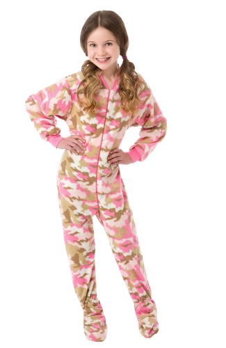 These fun infant & toddler fleece pajamas are extremely popular. They have even been worn on hit TV networks Nickelodeon, MTV and the Disney Channel! These pjs are pink camouflage in color, zip up the front and have non-slip soles. They come in unisex sizing 12mos - 4T. Available is in sizes for sis (604 Pink Camo) and mom (207 pink camo) to make matching sets.